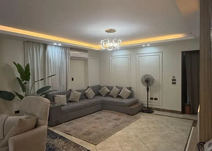 Spacious 2 Bedroom Apartment Secure Tower Parking is fitted with an equipped kitchen. This apartment is about a 40-minute drive from El Giza train station.